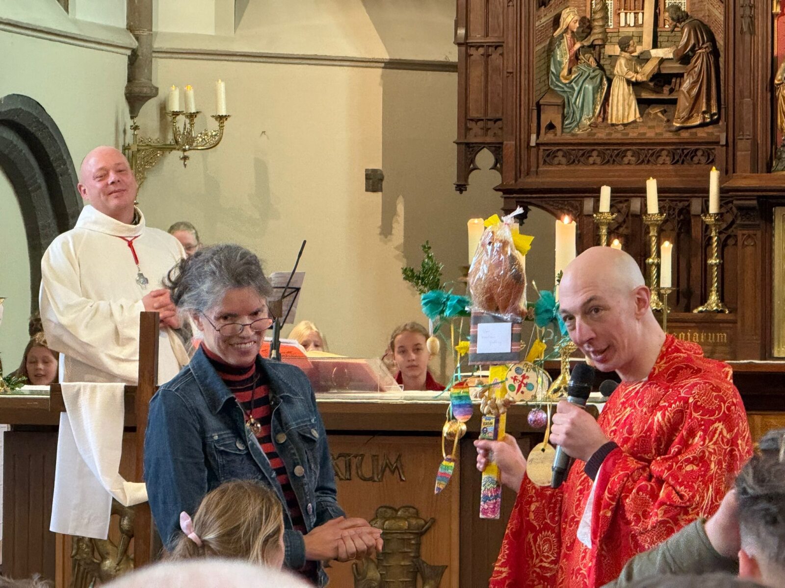Zondag was kapelaan Geoffrey hoofdcelebrant in de gezinsviering in de Lambertuskerk. Pastoor Paul Janssen, pater Avin en pastoraal werker Johanneke Bosman waren ook weer present. Het kinderkoor Eigen Wijs zong prachtig. Er waren veel kinderen die een Palmpaasstok hadden gemaakt. Kapelaan Geoffrey kreeg een speciale Palmpaasstok aangeboden, waaraan alle kinderen een bijdrage hadden gegeven. Na afloop hebben nog heel wat mensen Geoffrey de hand geschud. In het Parochiecentrum was het nog gezellig. Dank aan het Kinderwerk voor het voorbereiden van deze viering.