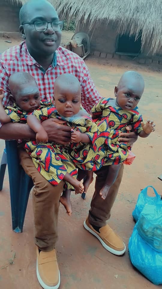 De drieling, die hun moeder kort na de geboorte verloor, groeit snel. De twee meisjes, Agatha en Mary, zijn groter dan hun broertje Paul. Moeders uit het dorp vertelden mij dat meisjes in het begin vaak sneller groeien dan jongens. Nu ze ouder worden, krijgen ze andere voeding die ze zonder problemen kunnen eten. verandert ook hun voeding. Op 3 mei vierden ze hun eerste verjaardag Hopelijk zetten ze snel hun eerste stapjes!